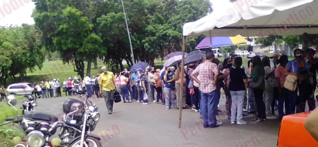 Entre la inmensa cola que superaba las 100 personas, se encontraban jóvenes de entre 20 y 40 años de edad, que habían recibido de un mensaje de parte de la plataforma Patria notificándoles su seleccionados para la vacunación.