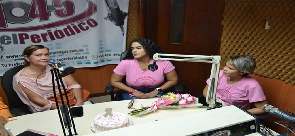 A este programa especial de El Periódico con los Vecinos", que transmite la 104.5FM Tu Preferida, acudieron dos sobrevivientes representantes de las 100 mujeres de lo que hoy conforman como las Damas de Rosa, 100 mujeres, algunas sobrevivientes, otras en pleno tratamiento. Historias con distintos abordajes, de acuerdo a la personalidad, pero todas con una gran dosis de sabiduría e intenciones de ayuda a quienes están pasando por procesos similares. Yelitza López y Meritliza Tovar, cada una, con el testimonio telefónico de la periodista caripiteña y sobreviviente del cáncer Auristela Ricoveri, despejaron dudas sobre lo que representa para una mujer toparse con un diagnóstico de cáncer de mama.
