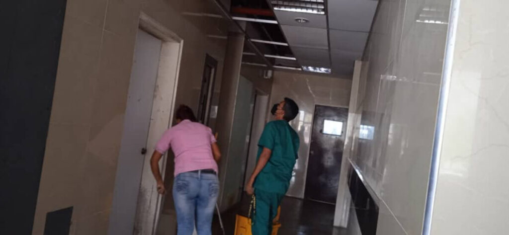 Trabajadores del hospital José Antonio Serres de Las Cocuizas, denunciaron los botes de aguas en las tuberías ubicadas por los techos en los pasillos del centro asistencial.