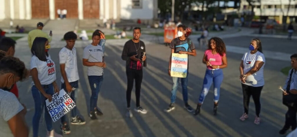 Con pancartas en mano: "Venezuela con Ucrania" y "Soy Defensor de los Derechos Humanos", representantes de la ONG Un Mundo Sin Mordaza en Monagas se unieron a la vigilia mundial por el cese al fuego en Ucrania, iniciado el pasado 24 de febrero.
