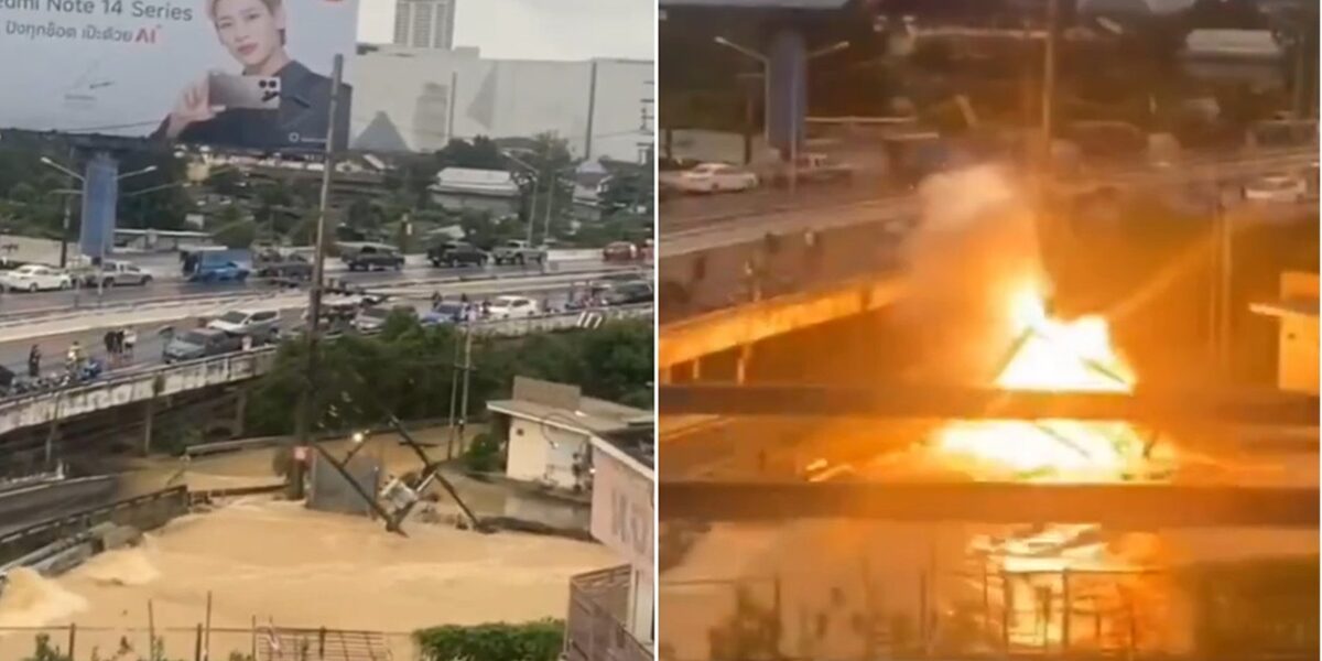 Entre los incidentes más peligrosos registrados, un video difundido por medios regionales mostró el momento en que un poste de alta tensión colapsa debido al aumento del nivel del agua y explota sobre un puente en la provincia de Songkhla, generando alarma entre residentes y equipos de rescate.
