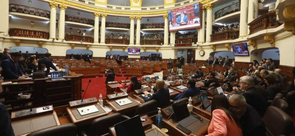 Tras el golpe de Estado anunciado horas antes por Pedro Castillo, el pleno del Congreso sesiona de emergencia y declara la vacancia presidencial por permanente incapacidad moral.