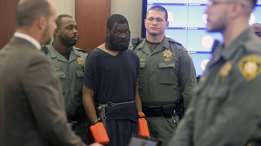 Esta vez, las autoridades judiciales, teniendo en cuenta el reciente ataque contra la jueza del Tribunal de Distrito del condado de Clark, Mary Kay Holthus, trajeron al acusado esposado, con guantes protectores contra golpes y con una máscara que cubría su boca. Además, el hombre estaba custodiado por varios guardias.