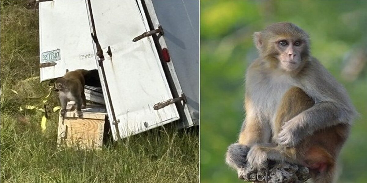 El camión transportaba monos Rhesus, que pesan alrededor de 7,7 kilos (16 libras) y son de los animales más empleados para estudios médicos en todo el mundo.