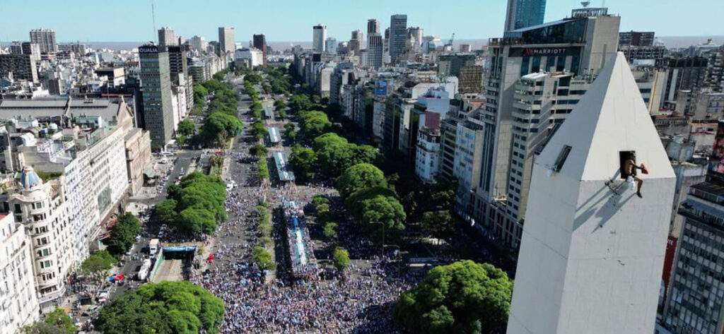 📍 FESTEJOS POR LA SCALONETA: PERSONAS TREPADAS EN LA PUNTA DEL OBELISCO #SomosCampeonesDelMundo 🇦🇷❤