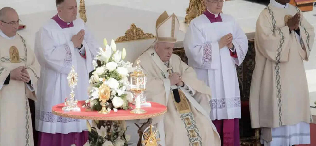Tras la ceremonia y el Regina Coeli posterior, Francisco se subió al papamóvil descapotable y recorrió largamente la abarrotada plaza saludando a las decenas de miles de fieles reunidos para la ocasión.