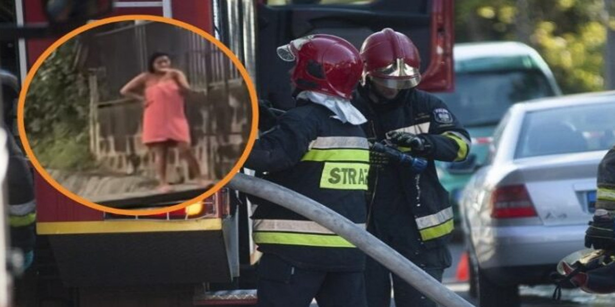 Mujer sale en toalla para ver un accidente