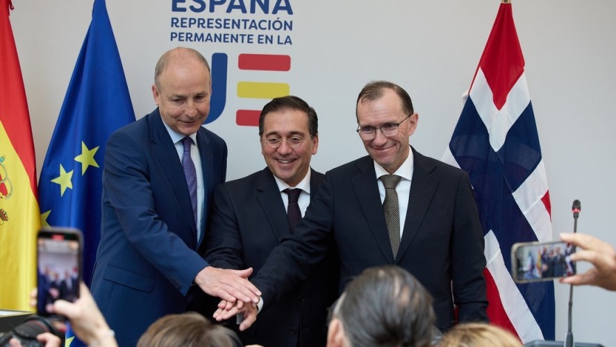 Un día antes se habían reunido en Bruselas los cancilleres de España, Noruega e Irlanda, donde el ministro de Asuntos Exteriores, Unión Europea y Cooperación español, José Manuel Albares, sostuvo en una comparecencia conjunta que se trata de una decisión "histórica" y de un paso decisivo hacia "una convivencia pacífica y segura entre israelíes y palestinos".