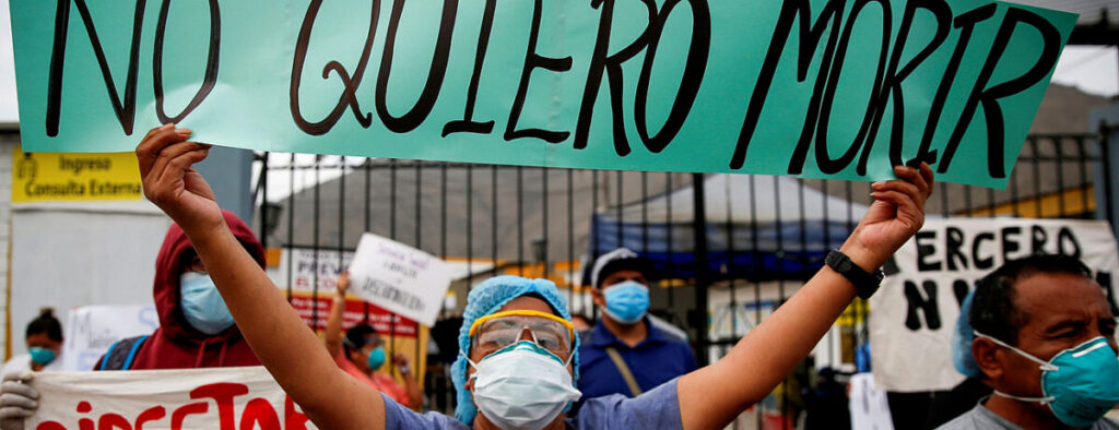“Trabajadores sanitarios de Perú salieron a las calles de Lima para protestar por las condiciones laborales, mientras luchan para hacer frente a la segunda ola de la pandemia del coronavirus”, escribió Reuters Latam en un video difundido en su cuenta oficial de Twitter.