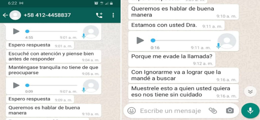 Los mensajes que reciben los galenos vía whatsapp son bastante alarmantes en lo que incluyen amenazas y sobornos a cambio de altas sumas de divisas o de lo contrario acciones contra ellos o de sus familiares.