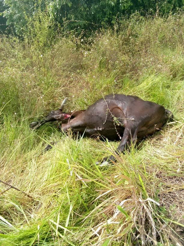 La vaca murió en el acto, mientras que el vehículo, con cinco personas a bordo, estuvo a punto de volcar, logrando el profesional del volante, con gran pericia, controlar la situación y evitar una catástrofe mayor.