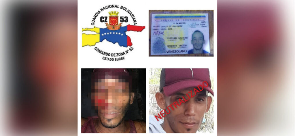En horas de la noche de este martes aproximadamente a las 11:00 pm, se registró un enfrentamiento entre delincuentes y funcionarios de la Guardia Nacional Bolivariana en el que resultó ultimado, Darwins José Vizcaíno Guerra de 29 años alias «el Curí».