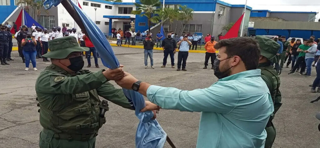 El coronel (FANB) Eduardo Alberto Almérida Padrón recibió el estandarte de Polimonagas, de manos del también coronel y saliente jefe de la estadal, Jonny Jesús Berroterán Pereiro, quien dirigía la institución desde el 2018.