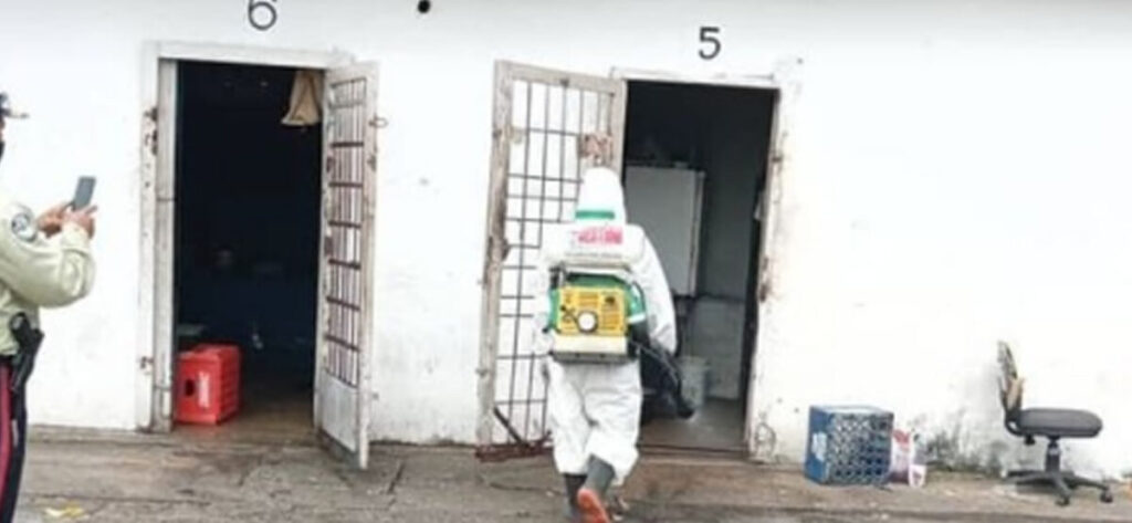 Para continuar con las medidas de prevención del Covid-19, este sábado funcionarios de Protección Civil realizaron una desinfección con hipoclorito de calcio los calabozos de detención preventiva del comando general de la Policía Municipal de Maturín (Polimaturín).
