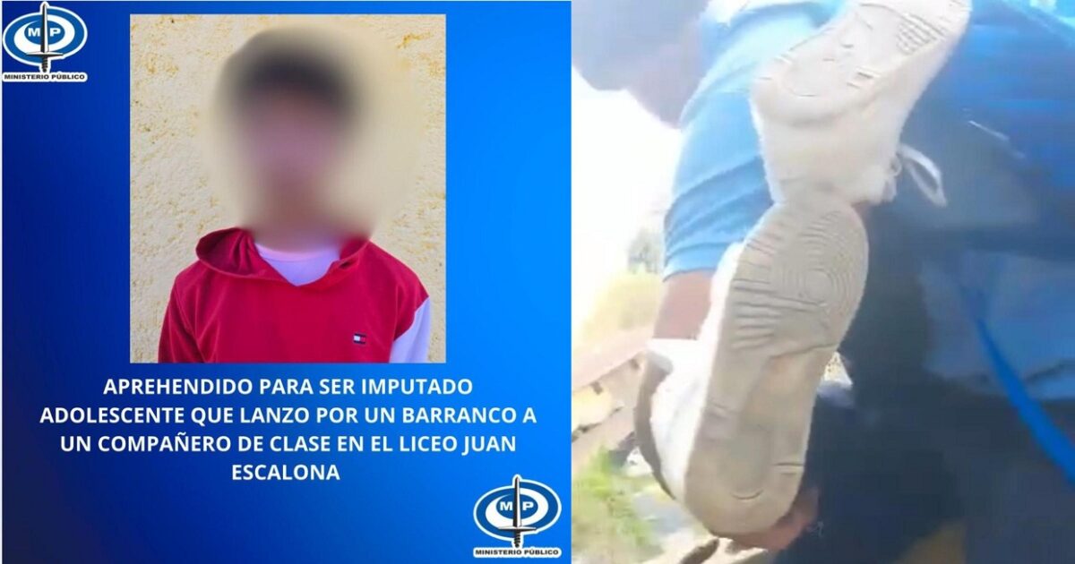 Por el caso, ya fue aprehendido el adolescente R.A.S.B de 15 años de edad, quien lanzó por un barranco a su compañero de clases J.A.P.G también de 15 años.