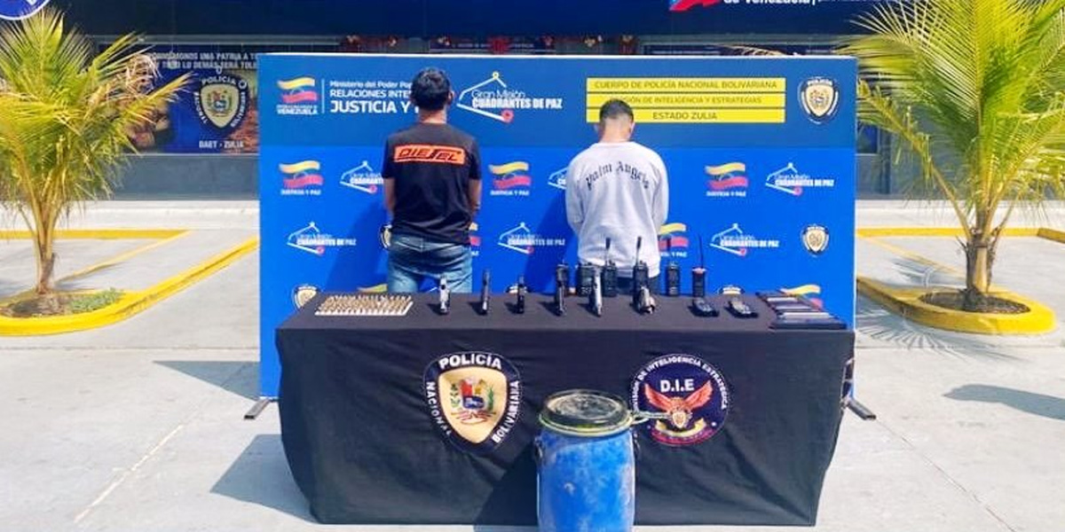 Según detalló, en el Zulia fueron detenidos William Chacín y Salvador Rodríguez, presuntamente integrantes de una estructura de delincuencia organizada dedicada a actividades delictivas relacionadas con armas y explosivos. Ambos serán imputados por los delitos de terrorismo, asociación para delinquir y tráfico ilícito de armas y municiones.