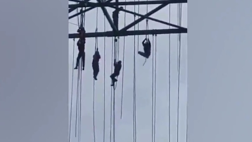 El angustiante momento de obreros que quedaron colgando a más de 100 metros