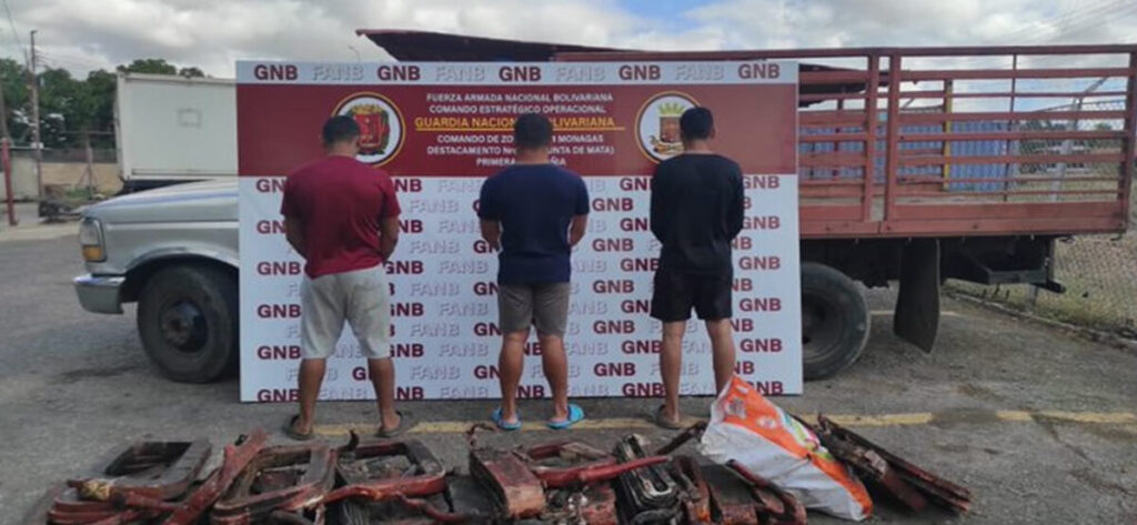 Para el momento, le retuvieron como evidencia varias piezas de material ferroso de dudosa procedencia. También el camión donde se desplazaban.