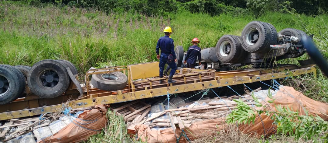 Aproximadamente a la una de la tarde de este lunes 20 de noviembre se registró el volcamiento de una gandola maraca Mack, placa 35AAJ, color blanco; perteneciente a la empresa Corporación Socialista de Cemento Cerro Azul.
