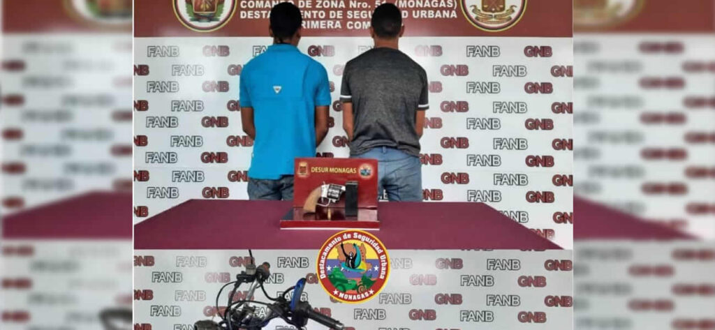 Los efectivos adscritos al Destacamento de Seguridad Urbana Monagas, incautaron a los sujetos un arma de fuego tipo revólver y una motocicleta.