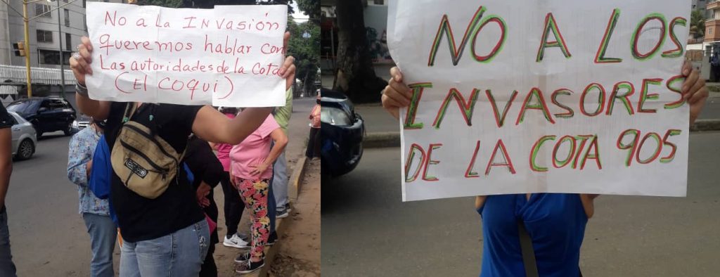 En una de las pancartas, mencionaron a Carlos Luis Revette como una figura representativa de La Cota 905. "No a la invasión, queremos hablar con las autoridades de la Cota (El Coqui)", dice uno de los llamados.