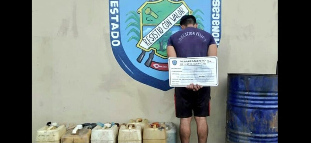 Los uniformados a darle voz de alto al sujeto, le retuvieron la cantidad de 10 bidones plásticos, contentivo cada uno con 20 litros del material estratégico, un tambor y una carretilla.