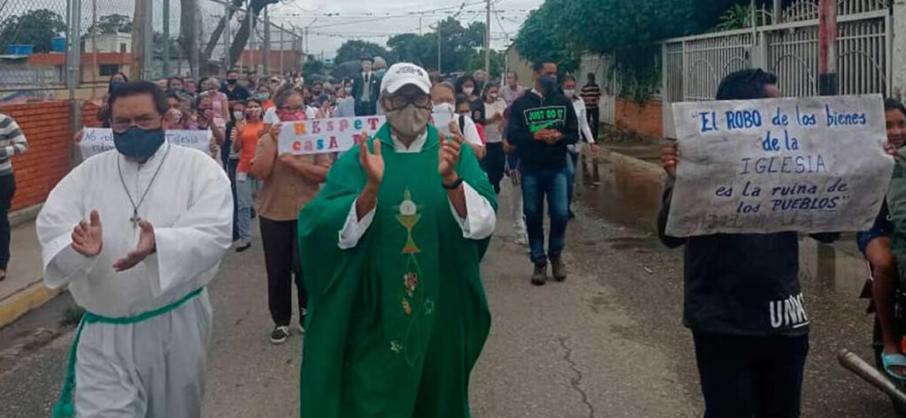 “El robo de los bienes de la Iglesia es la ruina de los pueblos”, decían las pancartas con las que feligreses de la parroquia Jesús de Nazareth al oeste de Barquisimeto, estado Lara, protestaron este fin de semana por el robo el cual fue objeto el templo religioso.