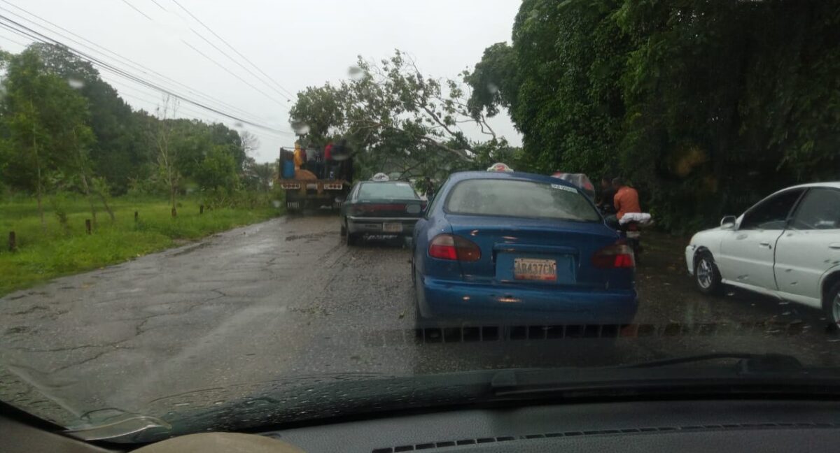 La intensa lluvia que cae sobre la ciudad de Maturín, producto de la onda tropical Nro. 6, causó la caída de un árbol en el sector Morichalito, en la vía a La Pica.