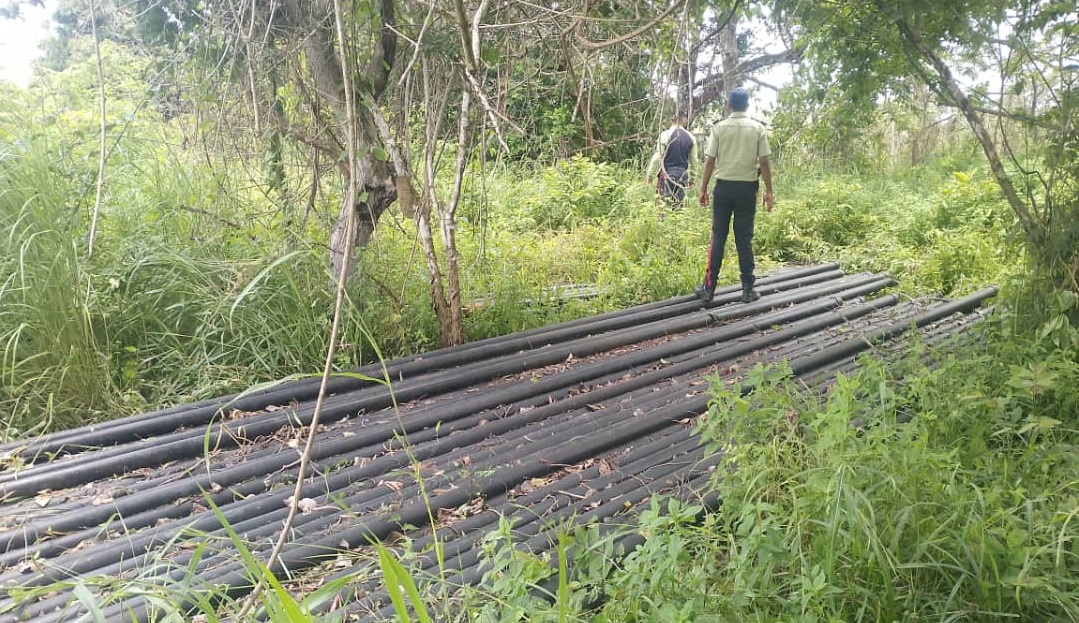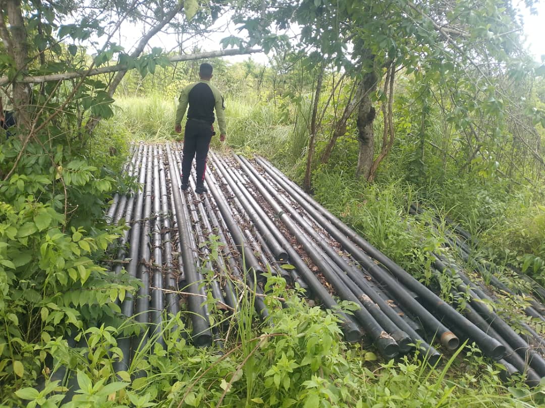 Mediante una publicación en la red social Instagram (@polipiroficial), se pudo conocer que los uniformados, quienes realizaban trabajo de campo en el sector Orocual (parroquia Chaguaramal), lograron visualizar el material, compuesto en su totalidad por tubos de perforación.