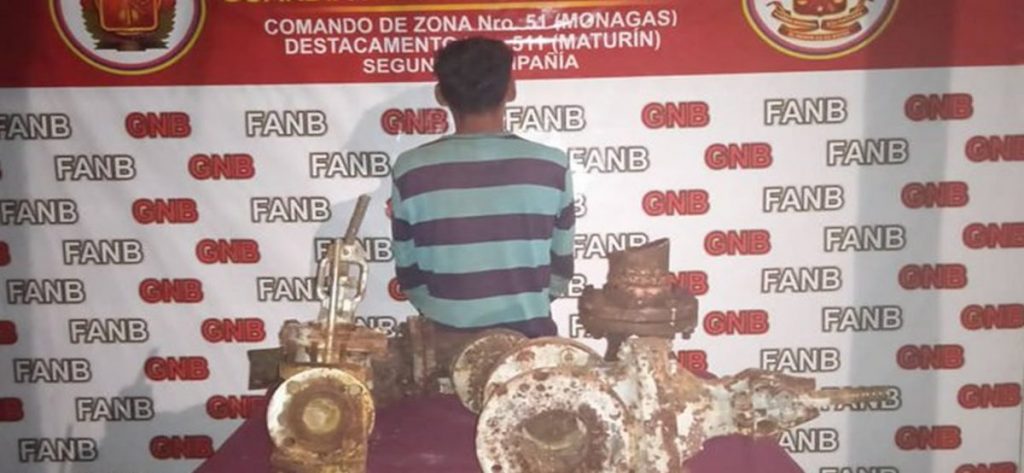 Durante labores de patrullaje en el avenida La sabana de la población de Caripito, municipio Bolívar, efectivos de la Guardia Nacional Bolivariana (GNB), detuvieron a un hombre por la posesión de material extraído de Pdvsa.