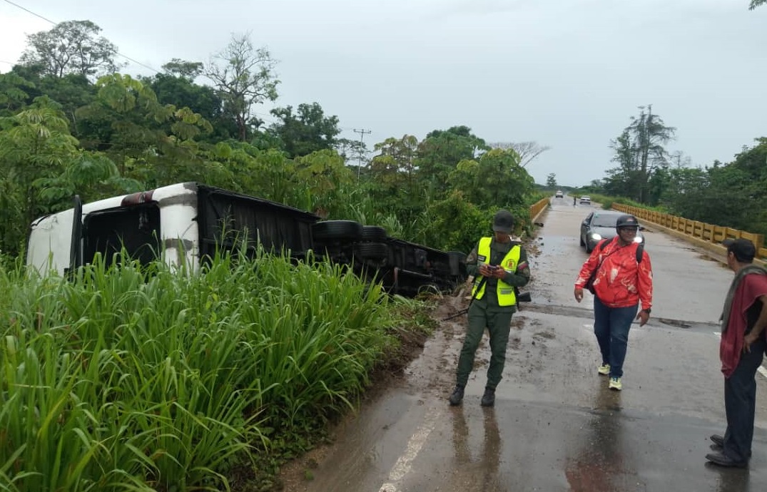 El accidente ocurrió a la altura del Puente Guanipa, al sur de la capital monaguense cuando al parecer el conductor perdió el control de la unidad, lo que provocó el impacto de la unidad contra la baranda de seguridad del conector vial.