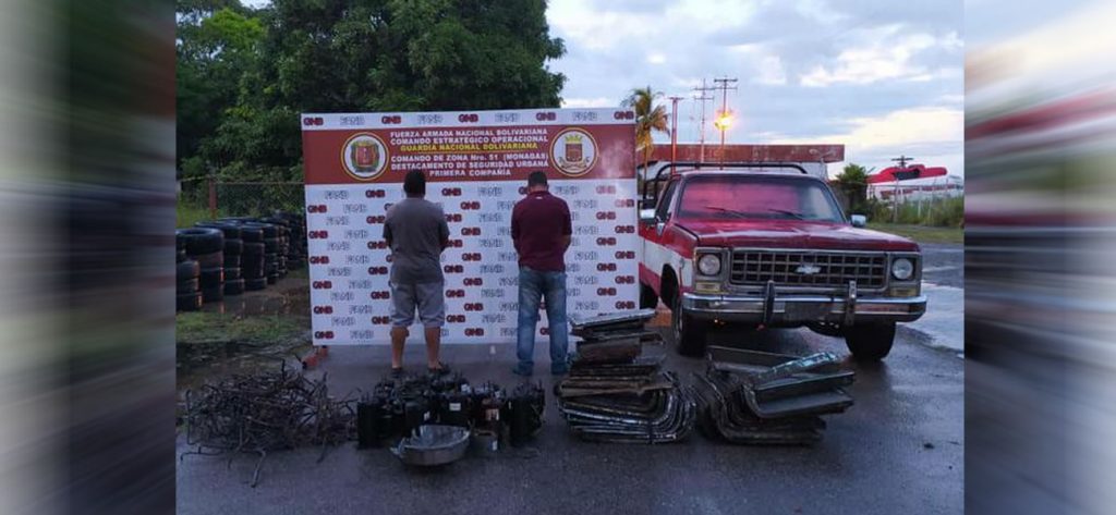 La camioneta Chevrolet roja con blanco fue interceptada en la ciudad de Maturín. Llevaba en la parte trasera varios compresores de aires acondicionados y piezas de hierro, así lo informó la institución militar a través de una minuta en la red social Twitter.