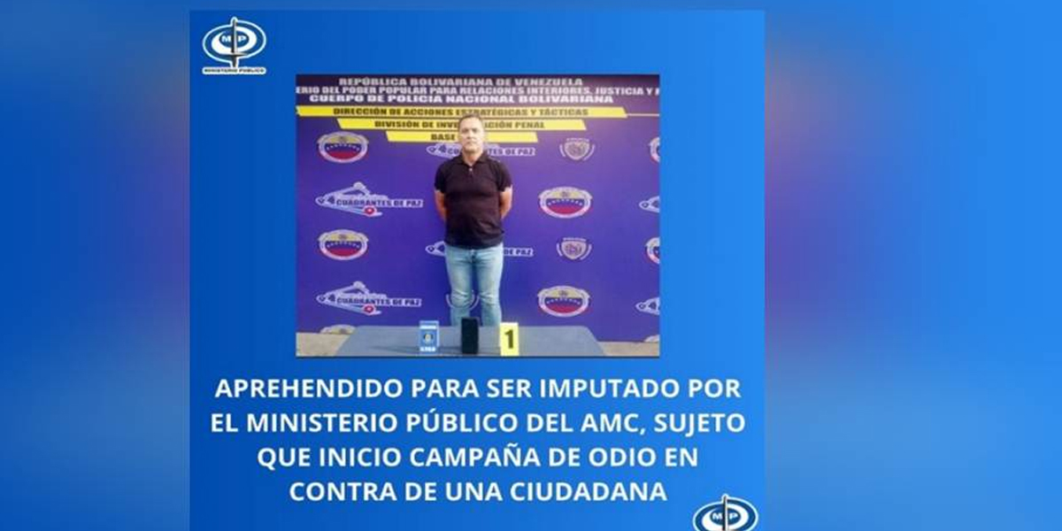 El Ministerio Público (MP) del Área Metropolitana de Caracas (AMC) imputará al ciudadano identificado como Pedro González, luego de haber sido detenido por funcionarios policiales por el delito de incitación al odio, hacia una fémina de nombre Livieth Orta que cumple labores de jefa de calle en la comunidad donde reside.