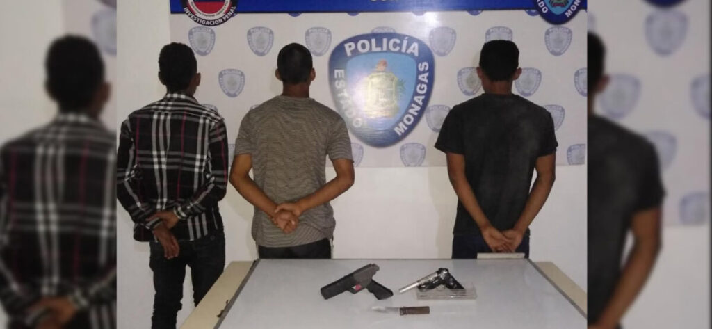 Polimonagas practicó la detención, en el sector Altamira de Temblador, municipio Libertador, a tres sujetos por el delito de porte ilícito de armas.