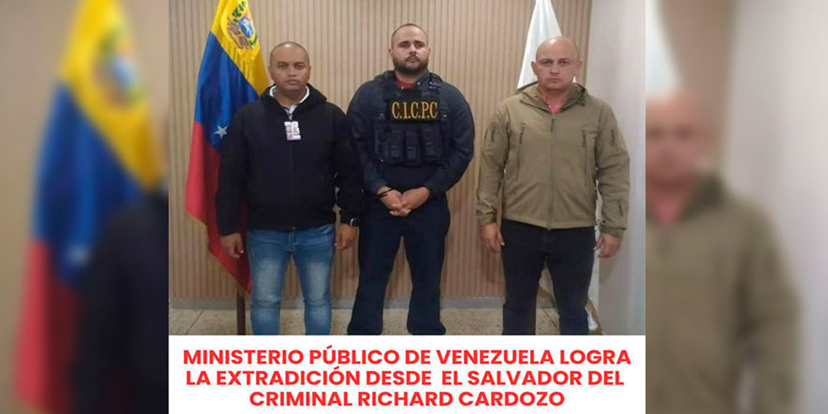 Hoy como Fiscal General de la República Bolivariana de Venezuela quiero anunciar que este día miércoles fue materializada la extradición a Venezuela desde El Salvador del peligroso delincuente, Richard Billings Cardozo Urribarri, integrante del Grupo Estructurado de Delincuencia Organizada El Yiyi, y autor material del atentado perpetrado contra la carnicería Tu Finca Express, el 18 de febrero de 2023 en Maracaibo, estado Zulia, en el que resultó una persona fallecida y otras tres resultaron heridas.