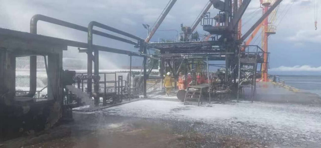 Detalló que «ya el incendio fue sofocado totalmente» y que «en pocas horas» serán reanudadas las operaciones en este muelle.