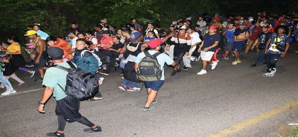 Los migrantes, que se mantenían en la plaza de Tapachula, en la frontera de México con Guatemala, salieron en caravana para exigir a EE.UU. que revoque la expansión del Título 42 que expulsa de forma inmediata a venezolanos que llegan por tierra a ese país.