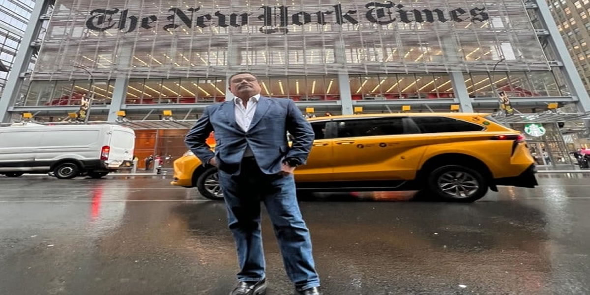 El también político, que anunció el 28 de junio que inscribirá su candidatura independiente en las presidenciales venezolanas en 2024, publicó una fotografía frente a la sede del diario The New York Times, en Estados Unidos.