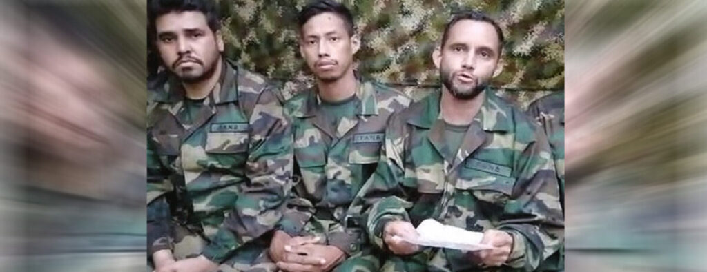 Hacemos este mensaje como fe de vida y testimonio de haber escuchado el mensaje de nuestros general en jefe (Vladimir Padrino) de estar haciendo las gestiones para nuestra entrega (…) y agradecer que las gestiones sean lo más diligentes y más rápido posible”, señala uno de los oficiales cautivo.