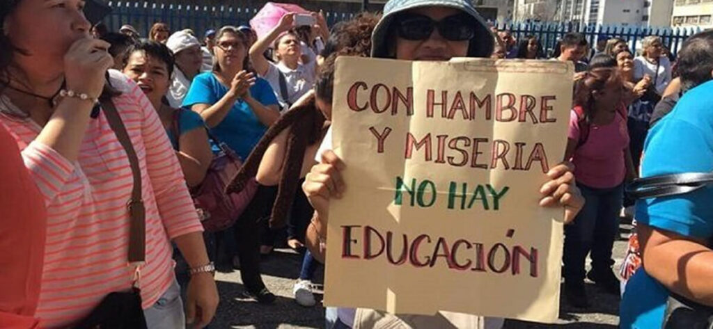 Sin embargo, fueron atendidos por un “representado” del Ministerio del Poder Popular para la Educación, quien alegó que no había “dinero para firmar una convención colectiva que dignifique al trabajador del sector educativo, que para nosotros se traduce en el cumplimiento del artículo 91 de la Constitución Nacional”.