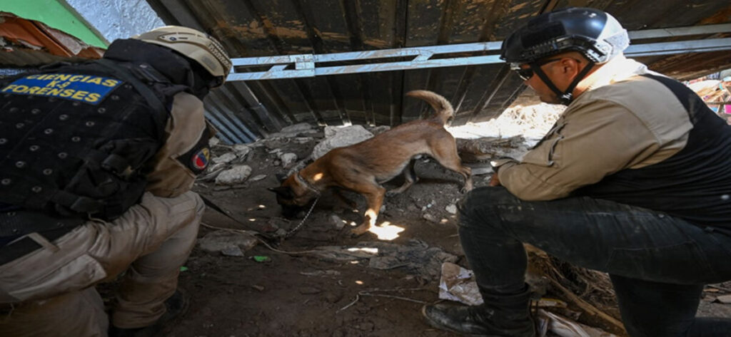 Estos agentes caninos, que ya han trabajado en operativos similares en otros estados del país, están entrenados para encontrar muertos. Protección Civil tiene otra unidad con perros especializados en encontrar personas vivas y que también han sido activados.