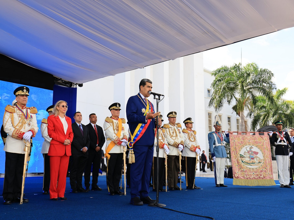 "Hoy es un día de gloria para Venezuela. Transmitan mi felicitación a todos los integrantes de nuestra Fuerza Armada, heredera de la valentía de Bolívar y Sucre. Este 5 de julio no solo celebramos a nuestra institución castrense, sino el día en que nuestro pueblo rompió las cadenas de 300 años de colonialismo y saqueo imperial", así lo afirmó el presidente Nicolás Maduro Moros, durante los actos conmemorativos por los 214 años de la firma del Acta de Independencia y el Día de la Gloriosa Fuerza Armada Nacional Bolivariana (FANB)que se celebró en el Patio de Honor de la Academia Militar de Venezuela.