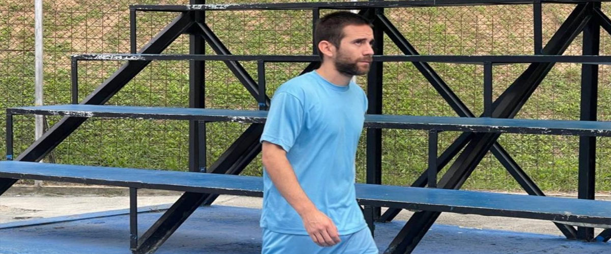 Las imágenes muestran a Gallo en perfecto estado de salud, caminando en un patio, vistiendo un uniforme celeste.