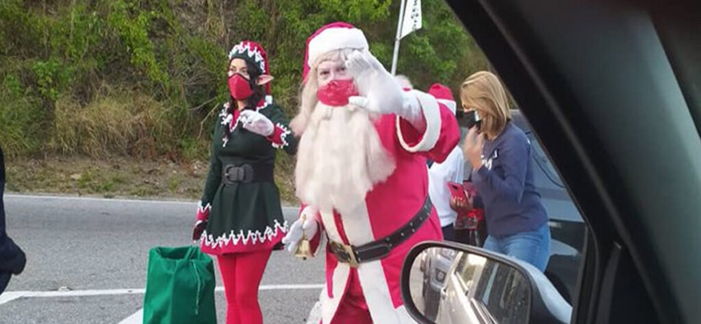 Desde las 6:30 am de este miércoles 1 de diciembre, Santa, con las medidas de bioseguridad, estuvo a un lado de la carretera alegrando el paso de todos, además de mandar un mensaje de amor y felicidad.